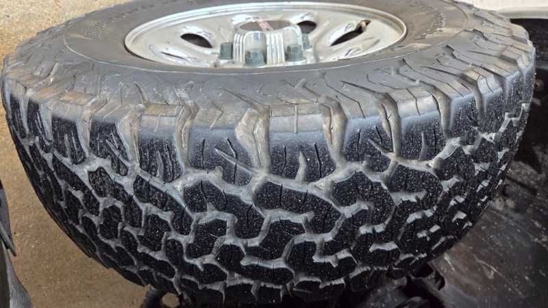 Tire carrier outside spare, winch-type mounted under frame at rear